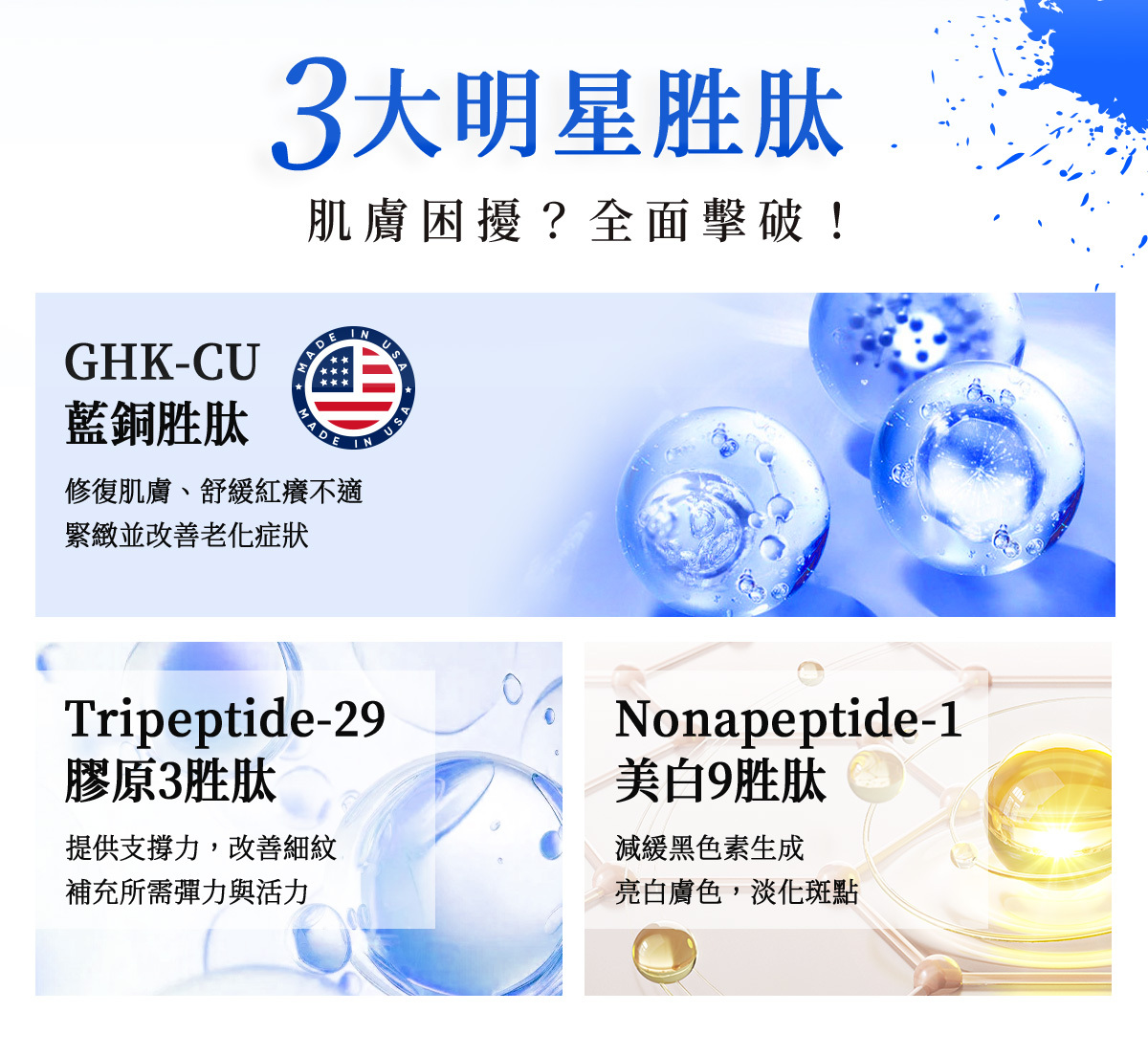 ▍奢華高濃度藍銅胜肽,突破保養停滯期