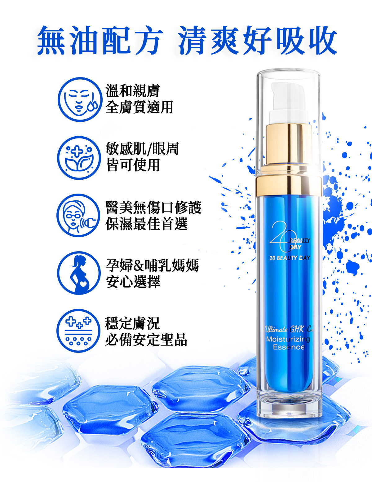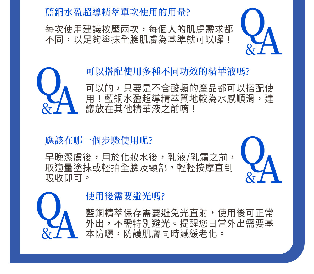 ※精華液:藍銅胜肽水盈超導精萃、玻尿酸保濕原液、靚亮活萃煥顏精華