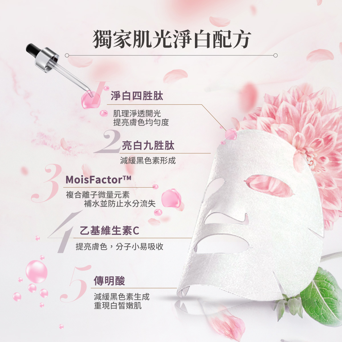 提亮淨白:肌光喚白濾鏡膜奏曲面膜(6片/盒)、璨光透白面膜(10片)