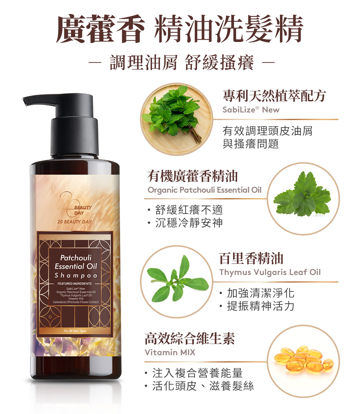 3. 廣藿香精油洗髮精(舒緩護癢) - 條理油屑,舒緩搔癢