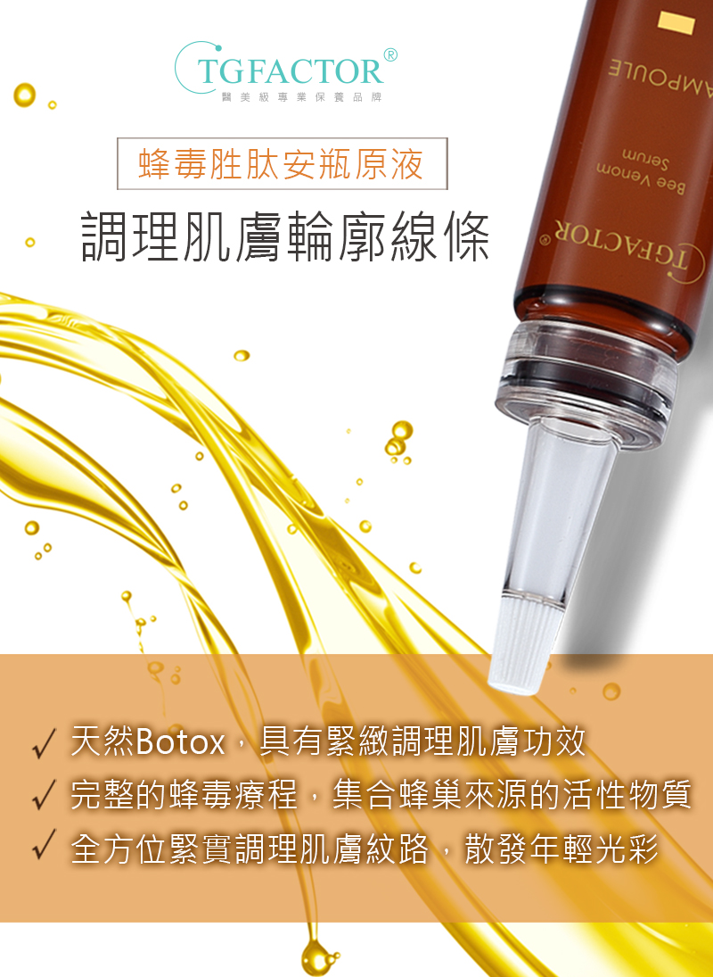 • 高濃度蜂毒肽 - 天然Botox有效撫平細紋,調理肌膚輪廓
