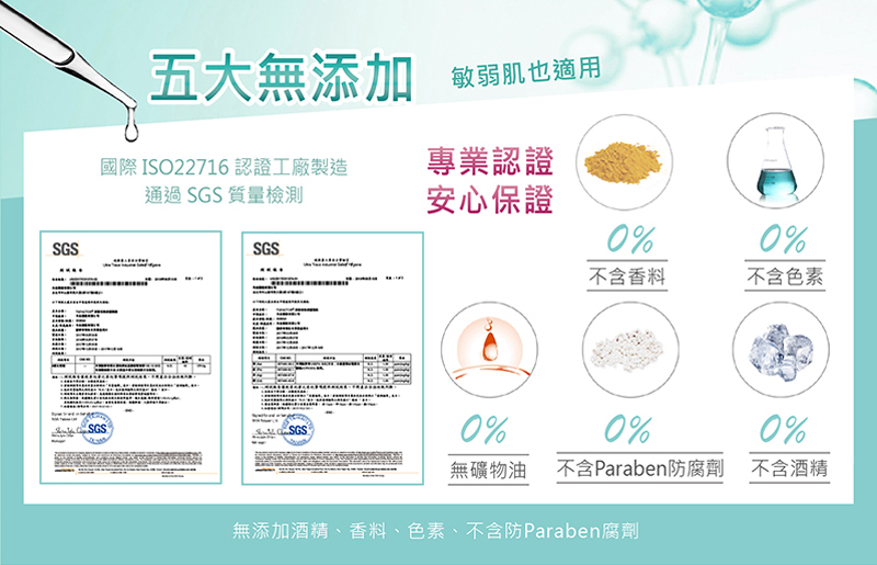 無酒精、無香料、無礦物油、無色素、無防腐劑