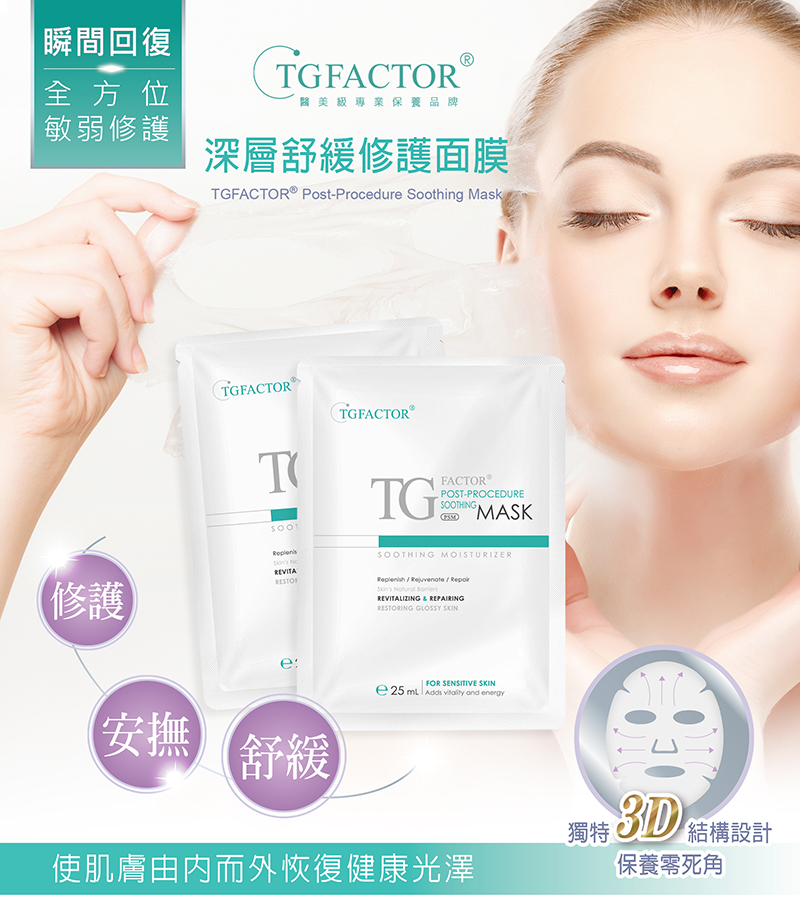 ▍ 專為術後敏弱肌膚打造的「深層舒緩修護面膜」