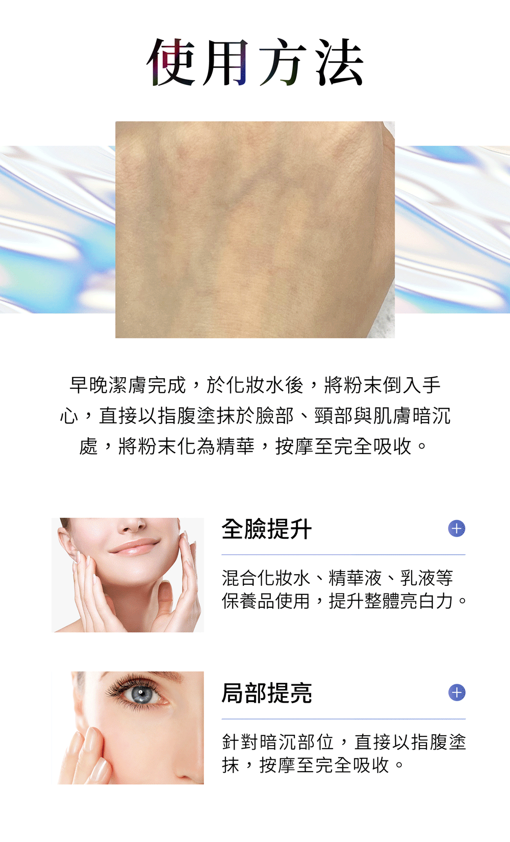 ▍濃縮粉末,一抹化為水霜質地,倍速美白