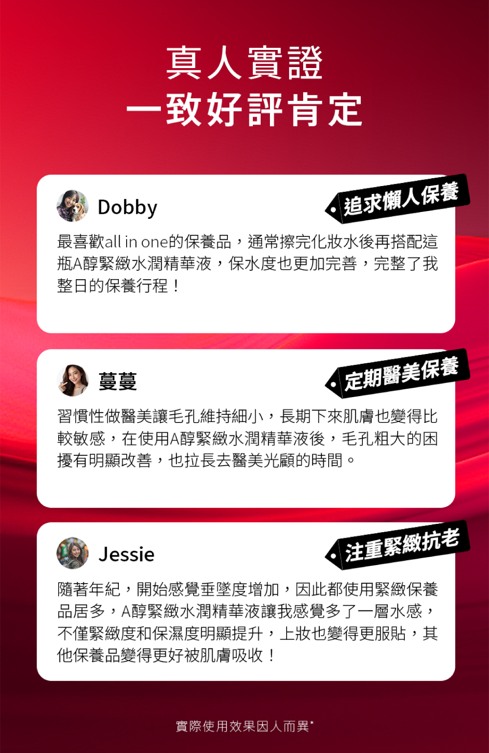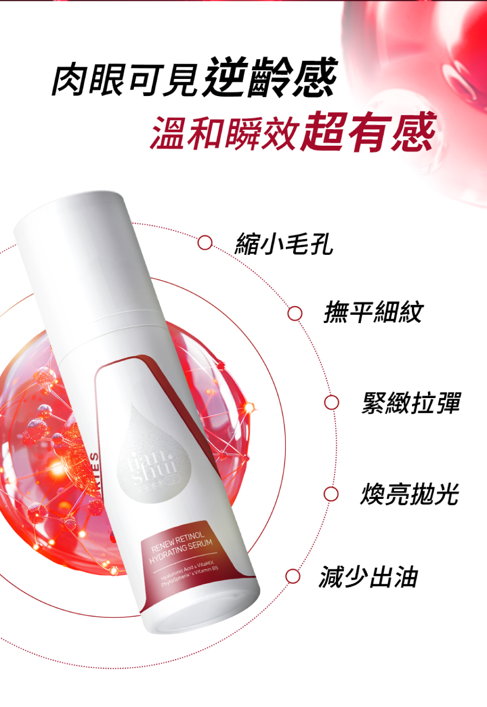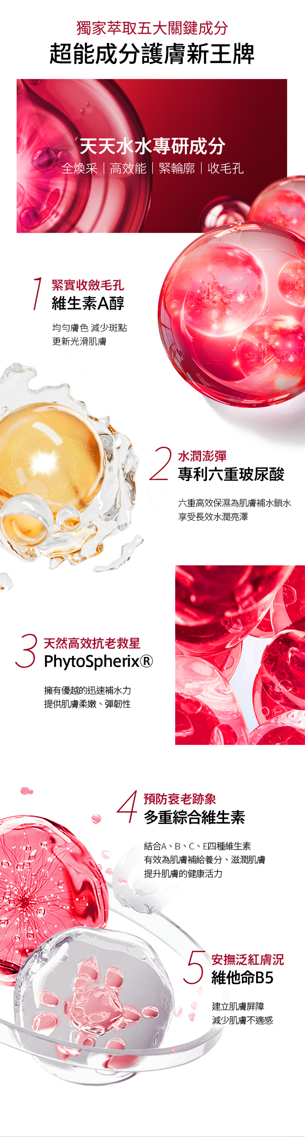 A級溫和煥顏,低敏弱高效能!極致淡化細紋、撫平毛孔、緊緻彈潤,搭配「專利六重玻尿酸」、「PhytoSpherix®」、「B5」為肌膚增加耐受力,輕盈超滲透,打造零瑕疵活力肌!